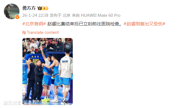 2026-01-25 00:10北京媒体人勇方方透露,受伤的北京男篮后卫赵睿已在赛后迅速前往医院检查。