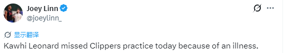 队记:莱昂纳德因为生病缺席球队今日训练 对阵篮网出战状态待定