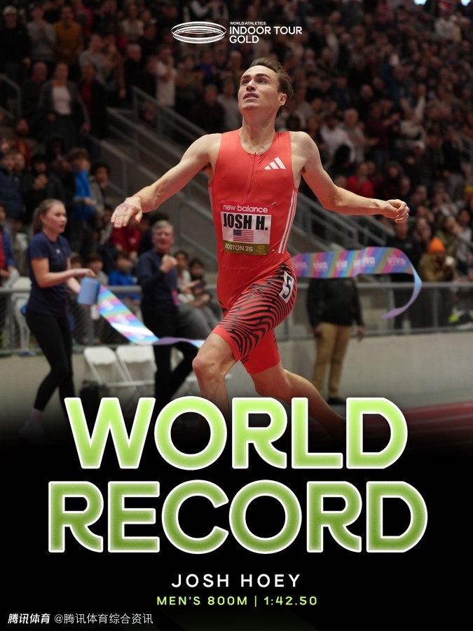 就在七周前,霍伊同样在波士顿创下了室内短道600米的世界最佳成绩。这位美国室内世锦赛冠军此番再添传奇,将威尔逊-基普凯特的原世界纪录提升0.17秒。