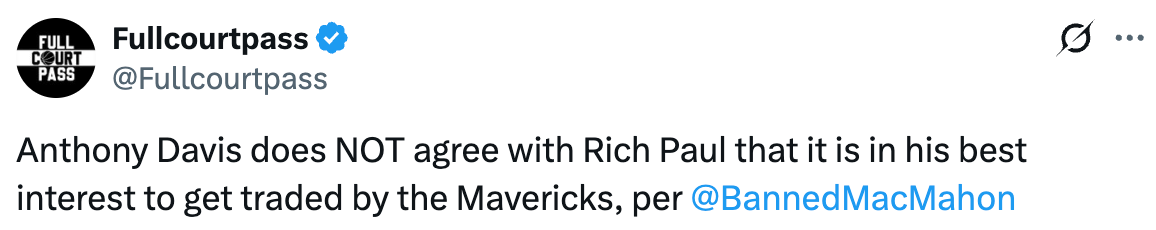 拒绝听富保罗建议?浓眉不认为被独行侠交易符合自己最佳利益选择