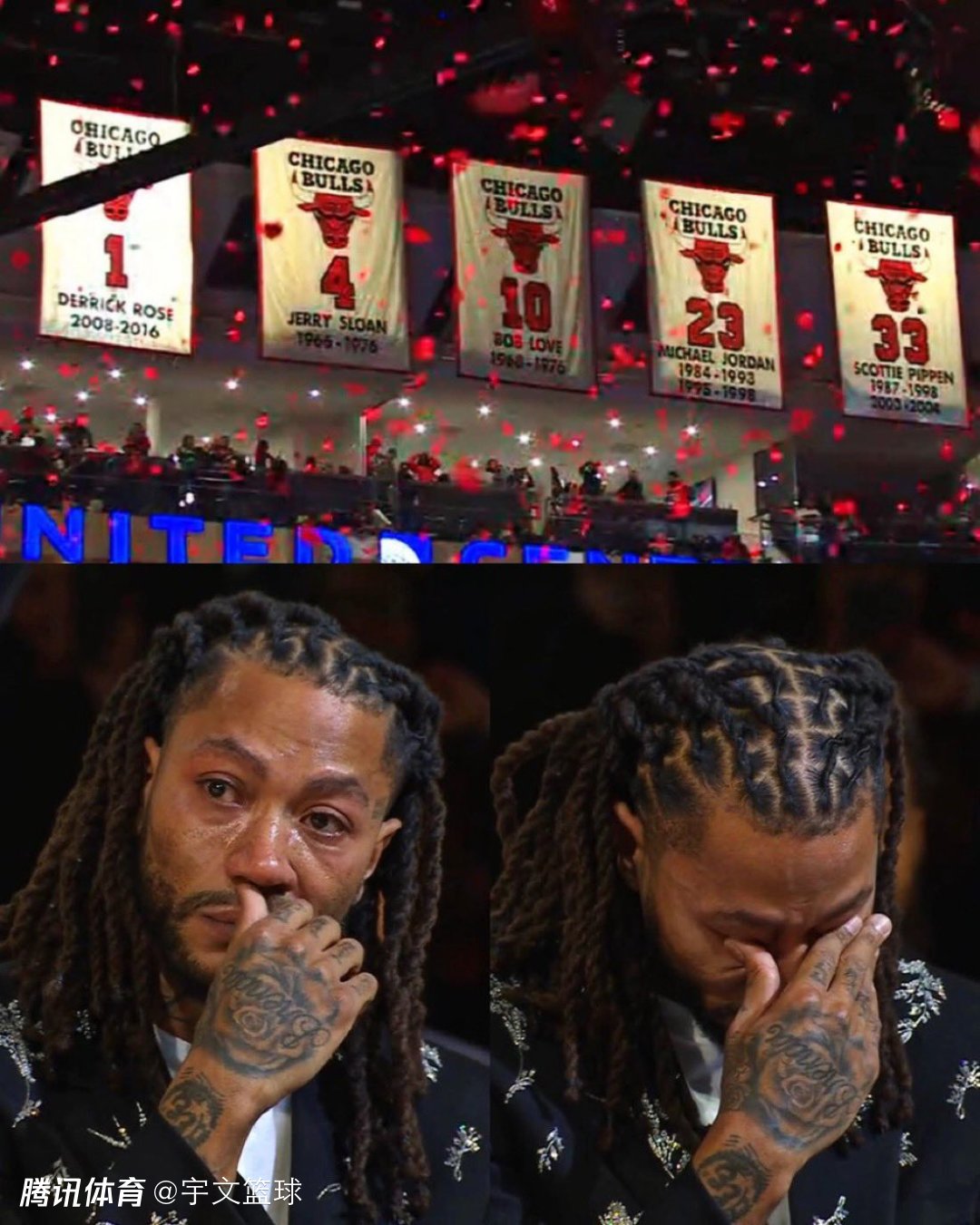 公牛1号球衣正式退役!罗斯动容泪洒现场 泰吉布森鲁尔邓感人发言致敬