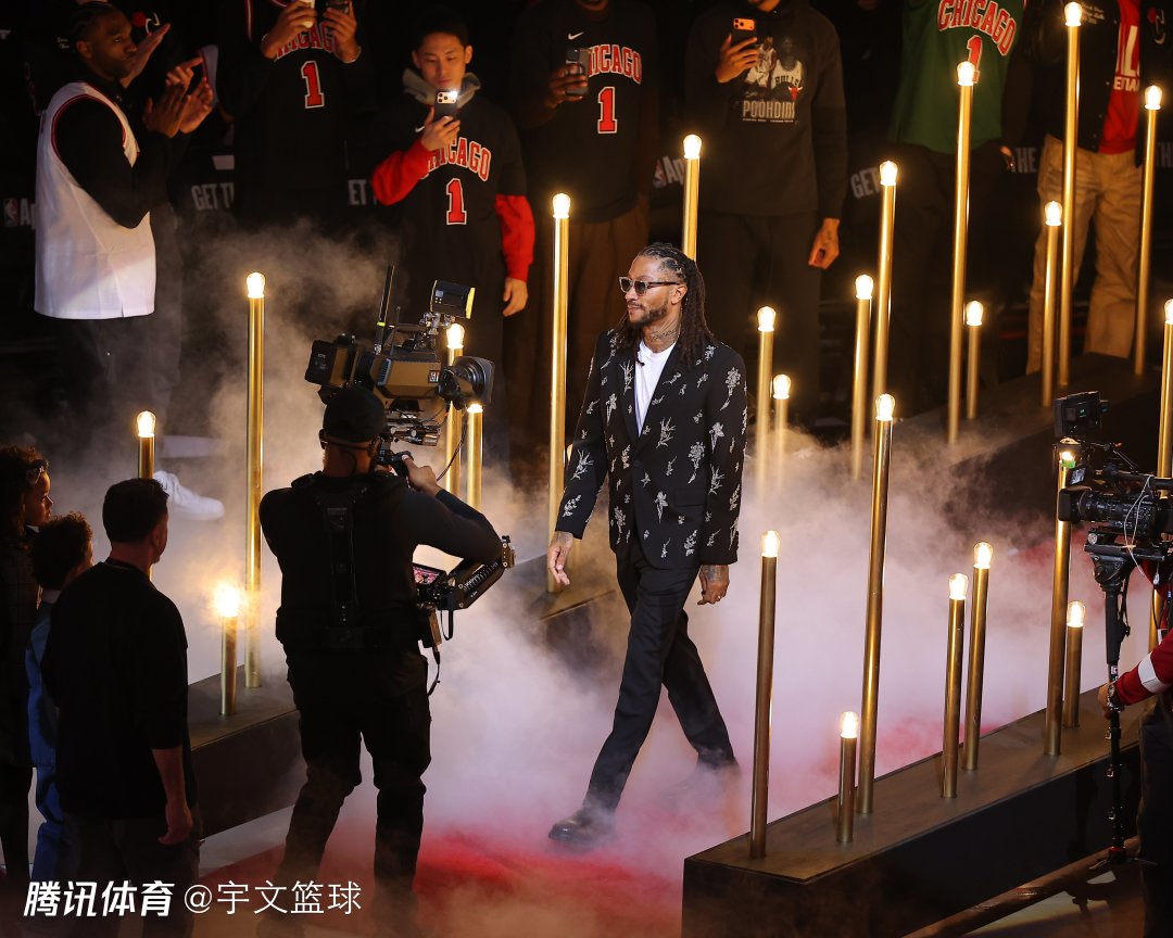 公牛先是播放一段关于罗斯的特殊纪念短片,随后在现场乐队演奏下,仪式正式开始。罗斯在特殊通道里,协同家人缓缓入场,随后与现场人员一一拥抱示意。他的前队友诺阿、泰-吉布森、鲁尔-邓和前主帅锡伯杜在场地里迎接他。