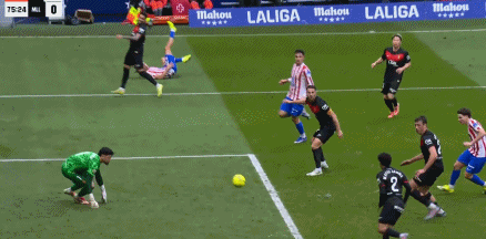 第75分钟,略伦特右路传中,莫雷解围击中洛佩斯入网,马竞2-0领先。