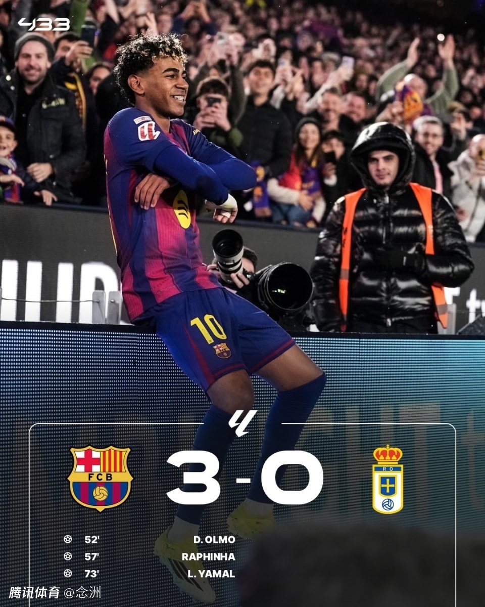 西甲第21轮,巴萨主场3-0奥维耶多,重新登顶领先皇马1分,对手两度失误送礼,奥尔莫和拉菲尼亚先后进球,亚马尔精彩侧钩锁定胜局。