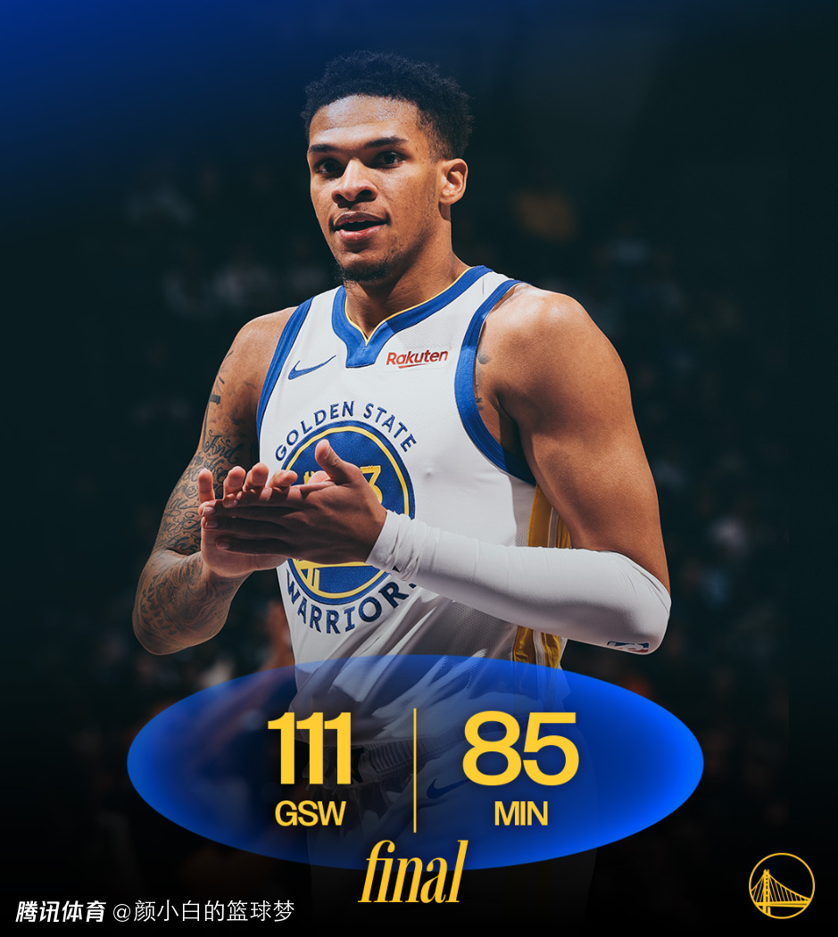 2026-01-26 19:20北京时间1月26日,勇士111-85大胜森林狼送给对手五连败。这场比赛是延期进行的,上半场两队还算胶着,可第三节勇三疯再现单节38-17直接打崩森林狼,末节库里仅打了5分钟就打卡下班了。