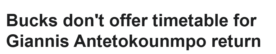 “目前确实没有具体的时间表。”里弗斯说道。换言之,目前的字母哥是无限期休战的状态。