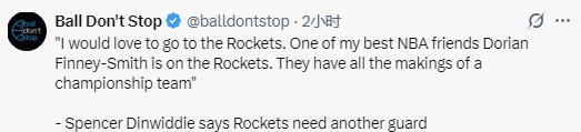 防守端的配置也绝对够用,伊森、芬尼-史密斯这些球员都是顶尖的3D球员,能投三分还能守,替补席上还有泰特这样能随时站出来的球员。所以说,火箭的争冠拼图其实都齐了。说实话,我真的特别想去火箭打球,也很关注交易截止日的动态,看看后续球队会有哪些操作。”