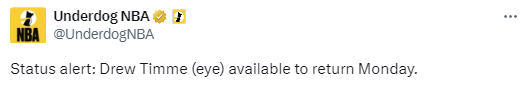 在受伤之前,蒂姆刚上场仅仅23秒,还没有任何数据入账。