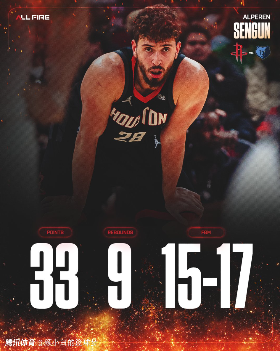火箭队记兰德里-宾克利赛后写道:申京完成了所有任务,这也是火箭队在进攻陷入困境的情况下仍能拿下比赛的原因。