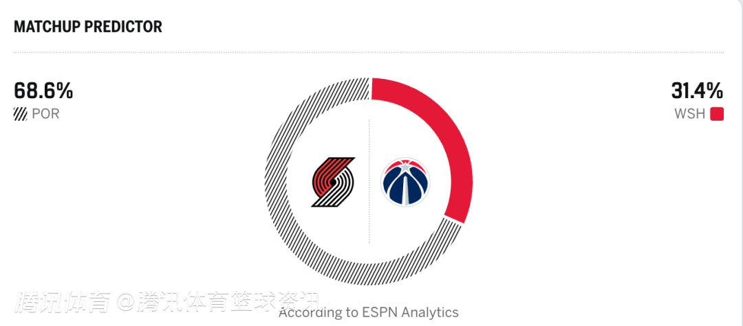开拓者68.6%,奇才31.4%