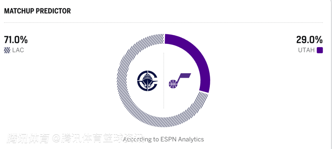 爵士、乔治、哈克雷斯、凯斯勒、尼昂、通杰、希布韦缺席,努尔基奇小概率出战,马尔卡宁出战成疑,乐福大概率出战
