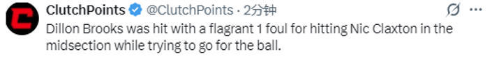 2026-01-28 10:40北京时间1月28日,NBA常规赛继续进行,太阳队对阵篮网队。首节比赛结束前7分01秒,狄龙-布鲁克斯在抢球时打中克拉克斯顿下腹部,被吹罚一级恶意犯规。