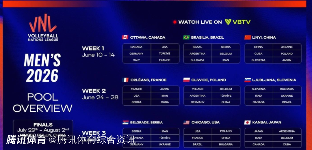 2026世界男排联赛中国两站定档:临沂迎分站赛 宁波北仑再办总决赛