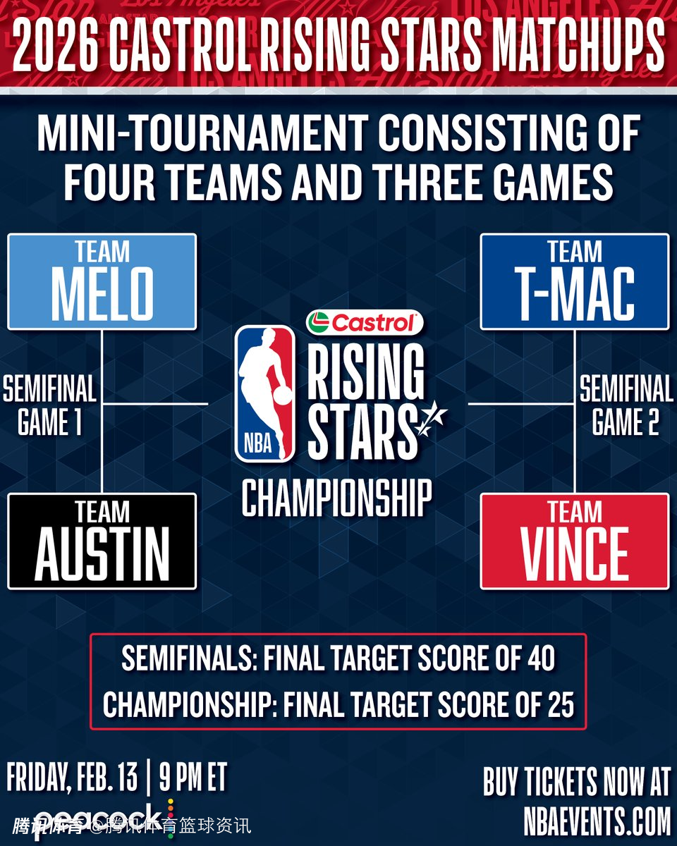2026-01-28 12:40北京时间1月28日,NBA官方公布了全明星新秀挑战赛的赛程安排,其中安东尼队和里夫斯队将在半决赛对决,另一组半决赛将由麦迪队和卡特队进行。