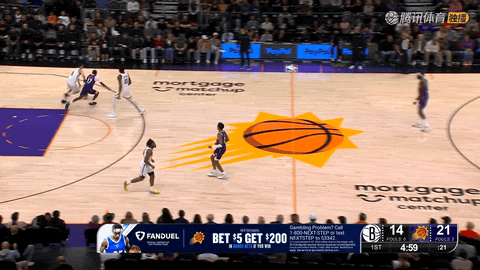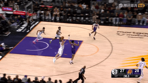 易边再战还剩11分38秒时,波特命中三分,带领篮网把比分追到54-60,随后突破挑篮再添2分,分差进一步缩小。第一波追分之后,太阳依靠威廉姆斯空切扣篮和阿伦三分稳住局面。第三节还剩7分46秒至6分47秒,篮网在不到一分钟内连续出现威廉姆斯进攻犯规、曼恩误传和杰明失误三次失误,太阳把比分从61-66拉大到61-69。