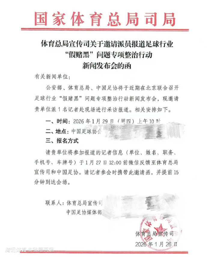 2026-01-28 15:20北京时间1月28日,来自多位媒体人透露,足球行业“假赌黑”专项整治行动的相关会议,将于29日上午10点在北京召开。