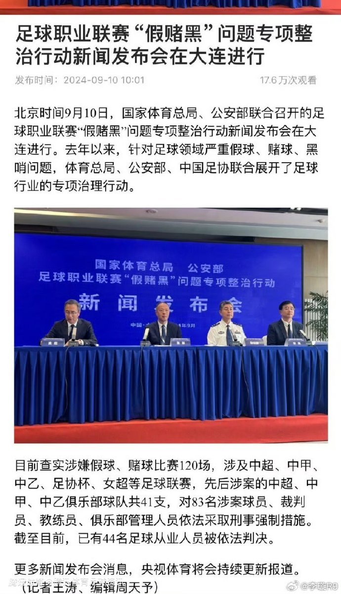 其一,是首次明确披露涉案俱乐部的整体规模。 据当时公布的信息,涉及“假赌黑”问题的男足职业俱乐部数量,覆盖中超、中甲、中乙三级联赛,总计41家。这一数字本身,就足以说明问题的系统性和复杂性。