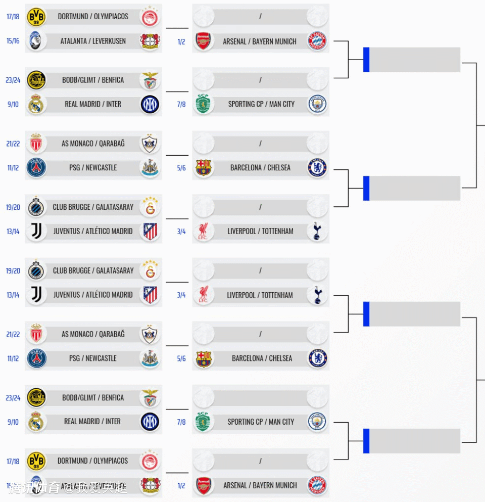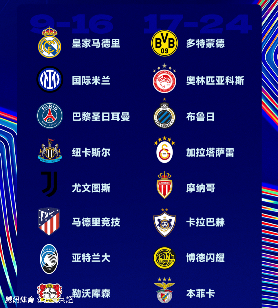 2026-01-29 07:30北京时间1月29日,欧冠联赛阶段8轮争夺全部结束。16支参加附加赛的球队全部确定,分别是:皇马、国际米兰、巴黎圣日耳曼、纽卡斯尔、尤文图斯、马竞、亚特兰大、勒沃库森、多特蒙德、奥林匹亚科斯、布鲁日、加拉塔萨雷、摩纳哥、卡拉巴赫、博德闪耀、本菲卡。