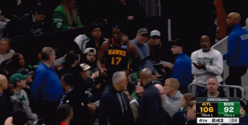 第四节比赛,凯尔特人的进攻回合,布朗想要背打丹尼尔斯,奥孔古上来协防,结果布朗直接一肘打到了他的面部,被吹罚一级恶犯,后者先行返回更衣室,但随后又回来罚球。