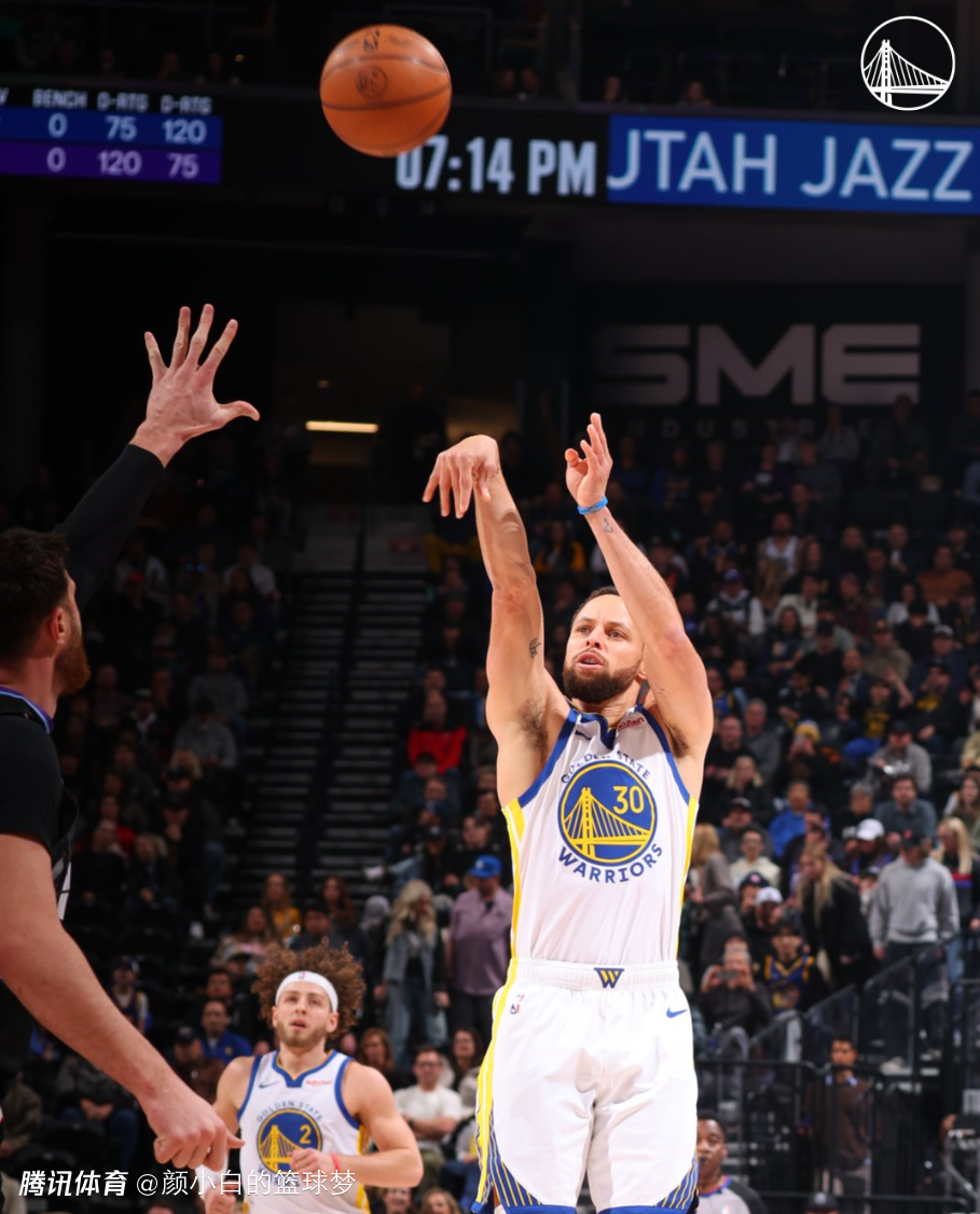 库里27分总得分超皮尔斯!勇士8人上双23记三分大胜爵士 李凯尔6+6