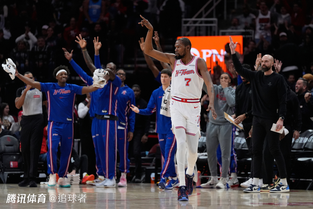 火箭:杜兰特24分2篮板6助攻,阿门25分7篮板4助攻,申京20投7中18分10篮板7助攻,伊森10分6篮板,小贾巴里8分7篮板,谢泼德9分5篮板