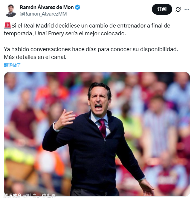 该记者透露,如果皇马决定赛季结束后换帅,埃梅里将是首选。最近几天,双方有过接触和商讨。拉蒙-阿尔瓦雷斯直言,皇马的问题并不是主教练,而是球员。在皇马,姆巴佩、维尼修斯、贝林厄姆、巴尔韦德这些巨星,地位在主帅之上,甚至能联合“做掉”主帅,阿隆索就是典型的例子。