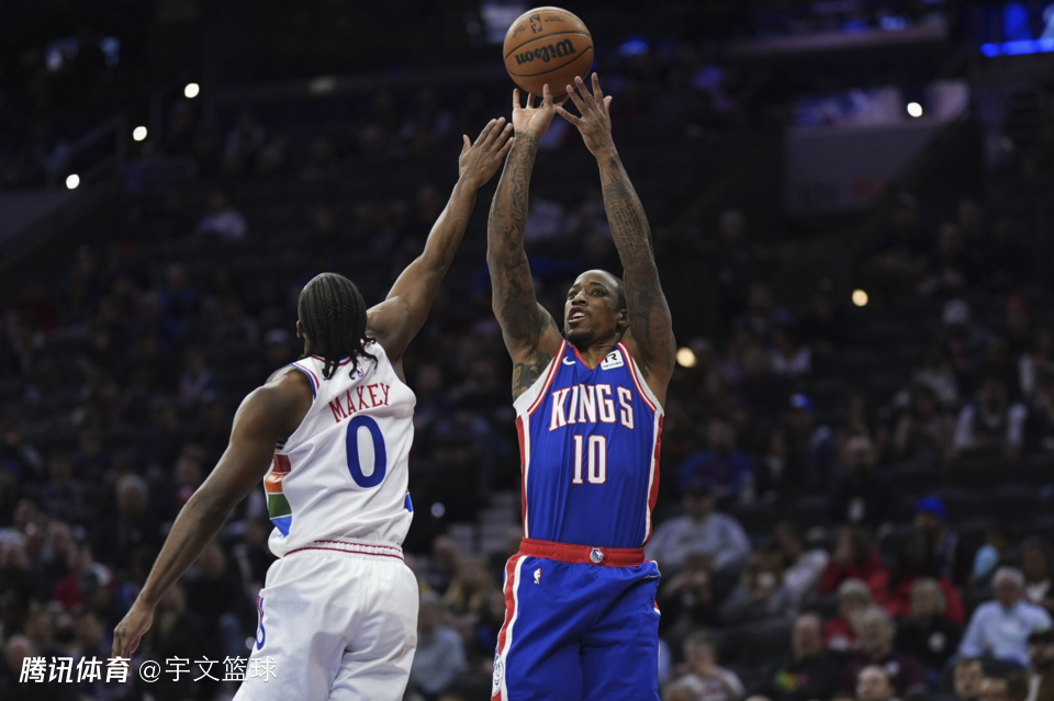 76人上场比赛迎来恩比德和乔治的回归,两人一内一外帮助球队在进攻端实力上升一个档次,并且恩比德能最大程度发挥自身的牵扯作用,给到后卫球员很好的投射空间。考虑到国王本身就不擅长防守,并且受限于薄弱的外线投射,76人可以通过后卫群在衔接段提速,打出压制级别的防守反击,利用进攻端的统治力建立优势。