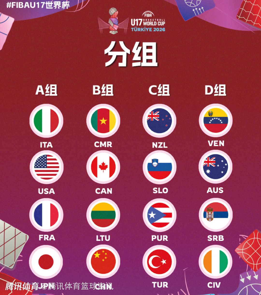 本届U17男篮世界杯比赛定于2026年6月27日至7月5日在土耳其举行。去年,中国男篮通过2025年U16亚洲杯四强锁定参赛资格。