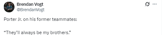在谈到自己的前队友们时,小波特表示:“他们永远是我的兄弟。”