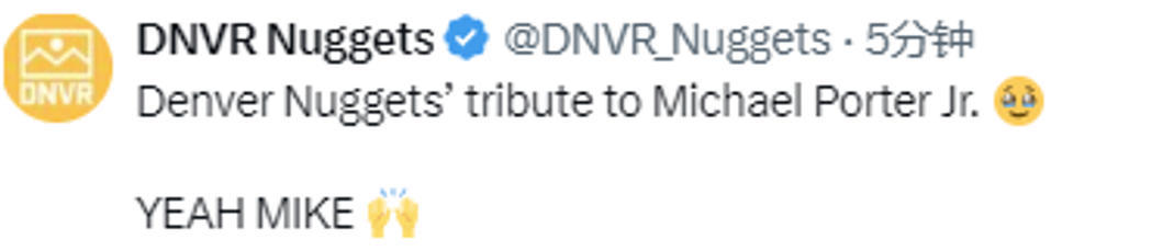 2026-01-30 11:00北京时间1月30日,NBA常规赛继续进行,掘金队对阵篮网队。本场比赛进行期间,掘金队在主场大屏幕播放视频,致敬了旧将小迈克尔-波特。