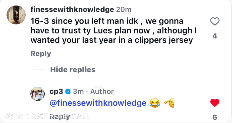 快船16胜3负引热议!球迷称保罗离队后更强 本尊评论笑哭表情包
