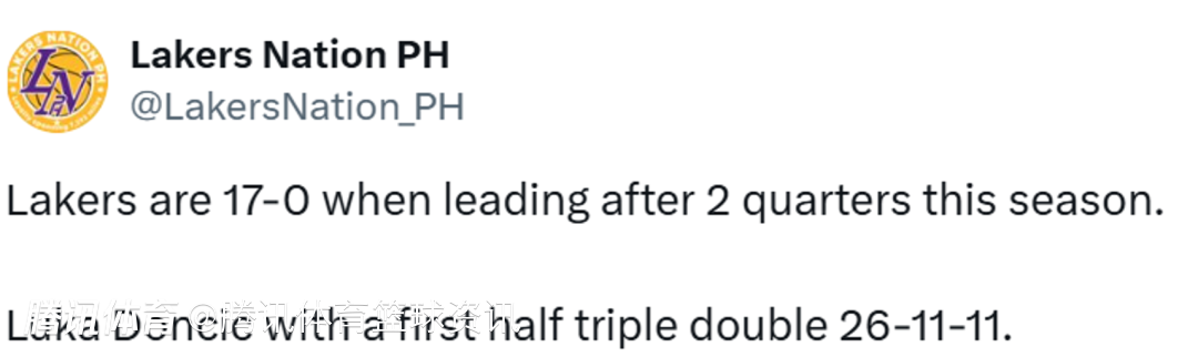 后卫单场用时最短三双!东契奇半场轰26+11+11 湖人领先29分又要大胜?