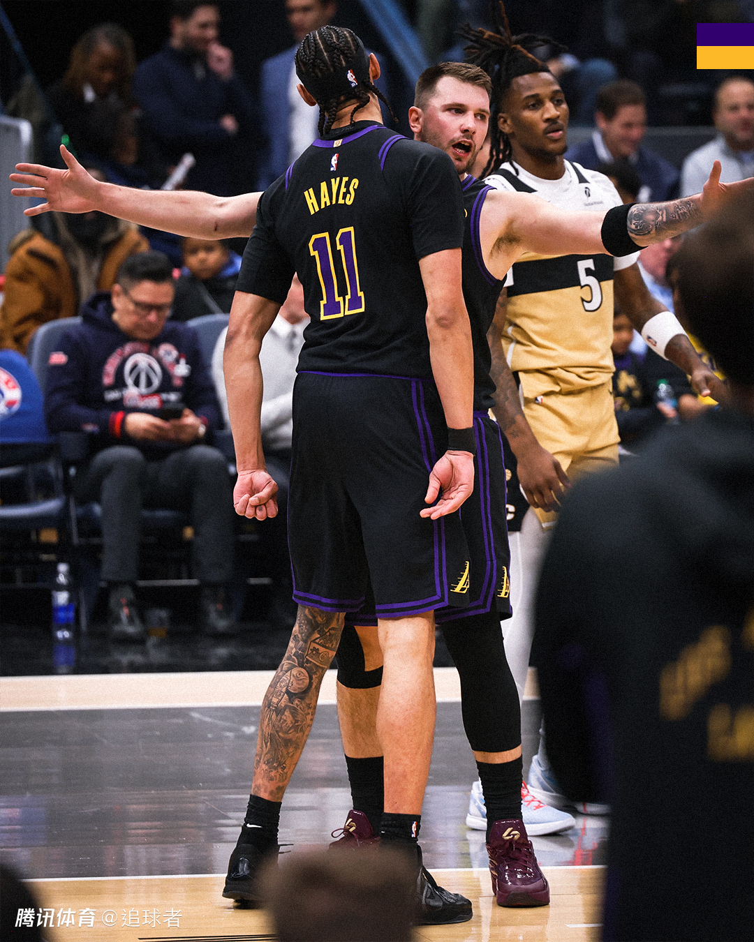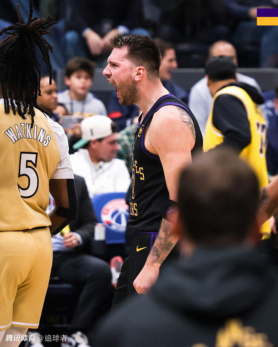 上一场湖人在客场30分惨败骑士,今日做客华盛顿对阵奇才,东契奇打出全能表现,开场连续两次中投得分,之后外线连中2记三分球,长传助攻詹姆斯快攻上篮以及连续助攻海斯空接暴扣,大秀各种传球之后,卢卡再中三分以及强硬单挑2+1,站在底线附近怒吼庆祝。