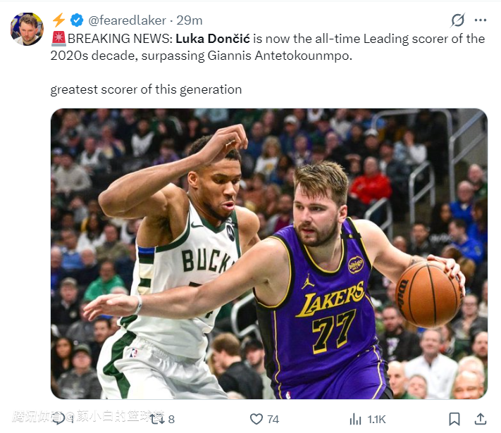 2.凭借上半场拿到的26分,东契奇也超越扬尼斯成为2020年代的新得分王,卢卡-东契奇是真的一代超巨。
