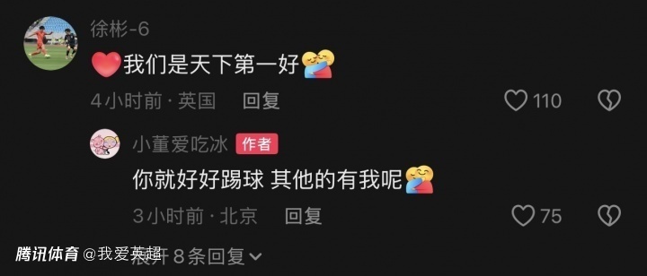 而徐彬本人也在评论区第一时间为女友的动态留言:“我们是天下第一好。”女友则幸福回复:“你就好好踢球,其他的有我呢。”