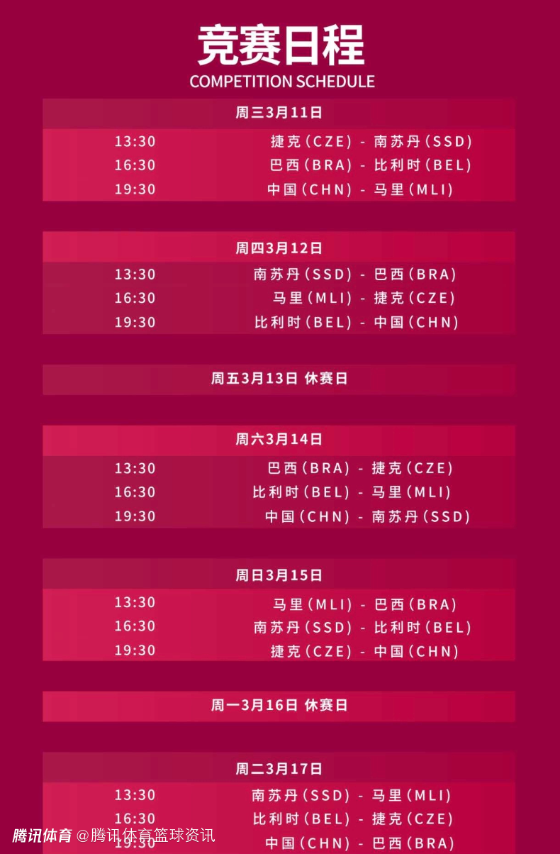 据媒体人我爱女篮报道,武汉赛区日前发布信息,公布了五个比赛日的竞赛日程。赛程显示,中国女篮将先后面对马里队、比利时队、南苏丹队、捷克队和巴西队,比赛时间都是晚上19:30,方便球迷到场观赛,也为赛事收视提升创造条件。