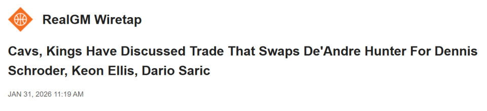 名记Scotto的最新消息显示,骑士与国王已就一笔交易展开磋商,具体方案为亨特前往萨克拉门托,而丹尼斯-施罗德、基翁-埃利斯和达里奥-沙里奇则转投克利夫兰。