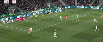 第29分钟,巴雷拉中场直传,阿尔瓦罗-罗德里格斯反越位成功低射破门,1-1。