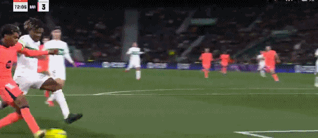4分钟,拉菲尼亚超远吊射被门将佩尼亚没收。