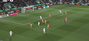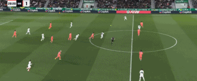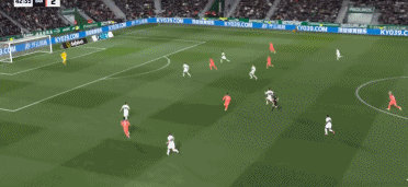 46分钟,费兰单刀球盘过门将低射被对手门线解围。
