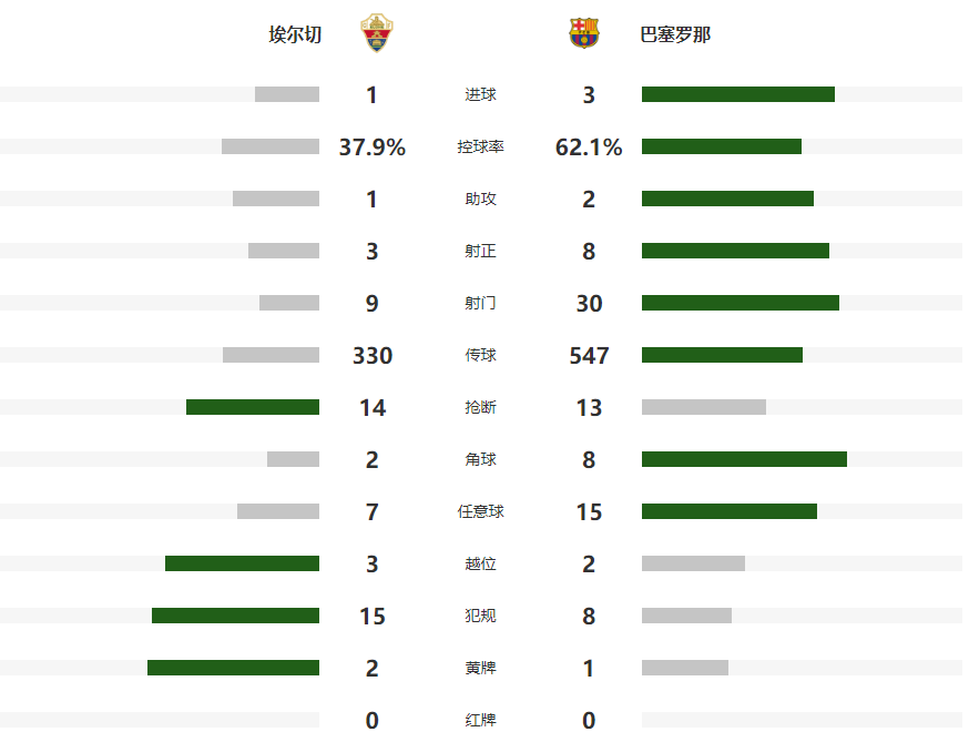 2026-02-01 06:10北京时间2月1日凌晨,西甲第22轮中,巴萨客场3-1击败埃尔切,联赛两连胜,领先少赛1场的皇马4分继续领跑。亚马尔、费兰-托雷斯与拉什福德各入一球,阿尔瓦罗-罗德里格斯一度扳平比分,费兰-托雷斯错失无数良机。