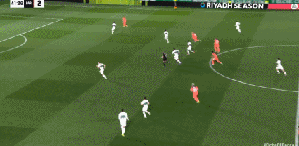 第42分钟,费尔明再次“吐饼”,他接到队友传中,禁区中路包抄近距离打门,皮球却离谱高出横梁。