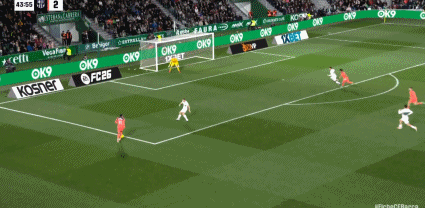 半场补时第2分钟,费兰-托雷斯单刀过门将打门,皮球又被对方解围。