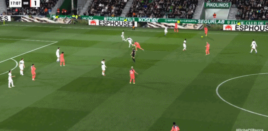 开场仅2分钟,巴萨精彩配合,亚马尔前插面对埃尔切门将,打门却遗憾偏出。