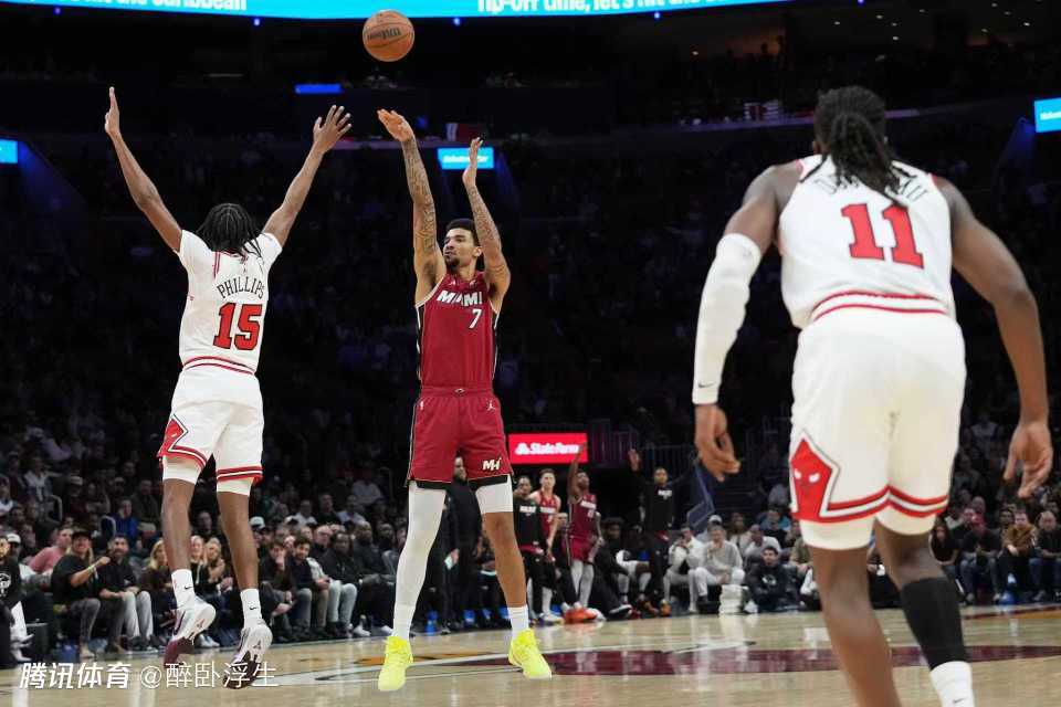 热火上一场客场116-113险胜公牛,公牛过去3场连输湖人、步行者与热火遭遇3连败,本赛季前两次交锋热火均客场战胜公牛。本场热火缺少鲍威尔、希罗、米切尔与罗齐尔,公牛缺少吉迪、怀特、武切维奇等。首节前4分半钟热火3-12落后,热火连追5分,公牛连得4分。热火持续反扑追到17-20落后,卡特三分命中,维金斯三分回敬,公牛内外开花扩大9分优势。热火再追3分,首节结束热火25-31落后公牛。首节公牛24中12,其中三分11中4,热火26中9,其中三分12中3。