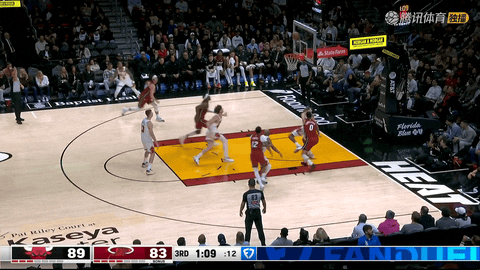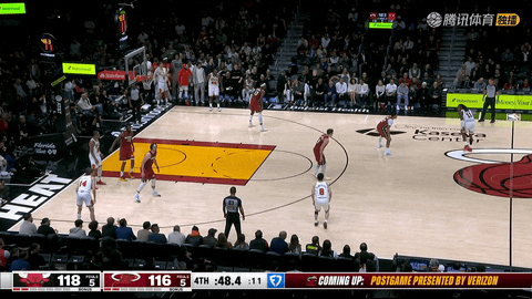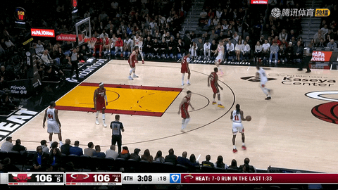 比赛进入决胜阶段,第四节还剩4分41秒时阿德巴约突破上篮,将比分追到106:101。紧接着哈克斯在还剩3分55秒时接史密斯助攻命中三分,维金斯在还剩3分37秒时通过罚球将比分追成106:106。