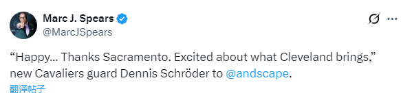 施罗德被国王交易后首次发声,在接受采访时他说道:“很高兴......谢谢萨克拉门托,我对于在克利夫兰的未来充满期待。”