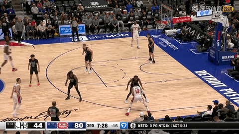 第三节还剩11分43秒到还剩2分48秒期间,活塞再次掀起29比7的进攻高潮,从44比69领先23分一路把比分拉大到51比96,分差被直接刷新到45分,篮网几乎失去追分希望。