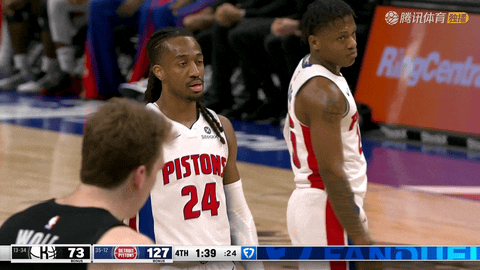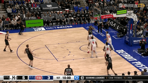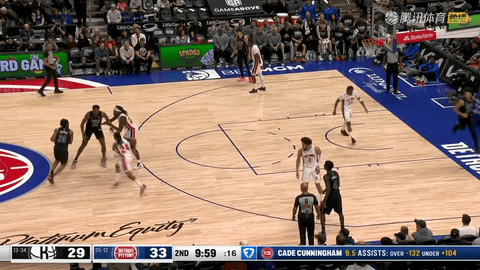 但从第二节还剩9分51秒的32:33起,比赛彻底倾向活塞。坎宁安先助攻格林命中三分,自己跑动挑篮得分,又连续撕裂篮网防线;格林和汤普森外线、篮下轮番得手,艾维在还剩7分38秒时完成跑动扣篮。活塞在这段9分51秒内打出34:15攻势,把比分从32:33拉开到44:67,领先优势从1分膨胀到23分,坎宁安截至第二节还剩0秒时已经拿到13分和10次助攻,半场完成两双。第二节压哨时,汤普森在还剩0秒时命中三分,为活塞稳住23分优势进入半场。