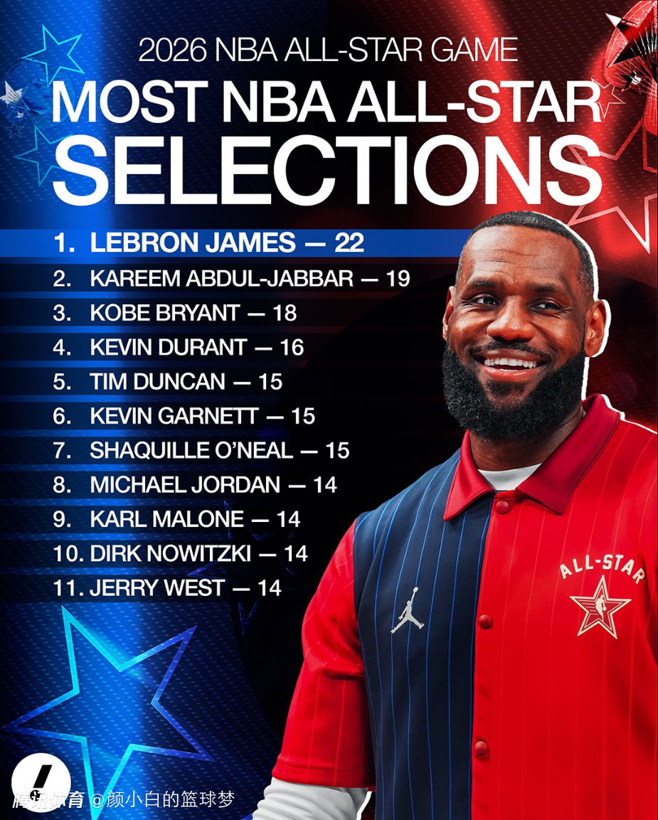 勒布朗连续22次全明星也继续刷新NBA历史第一纪录,排在第二的是贾巴尔19次,那么输掉这场比赛的勒布朗22连全明星就是安慰奖?